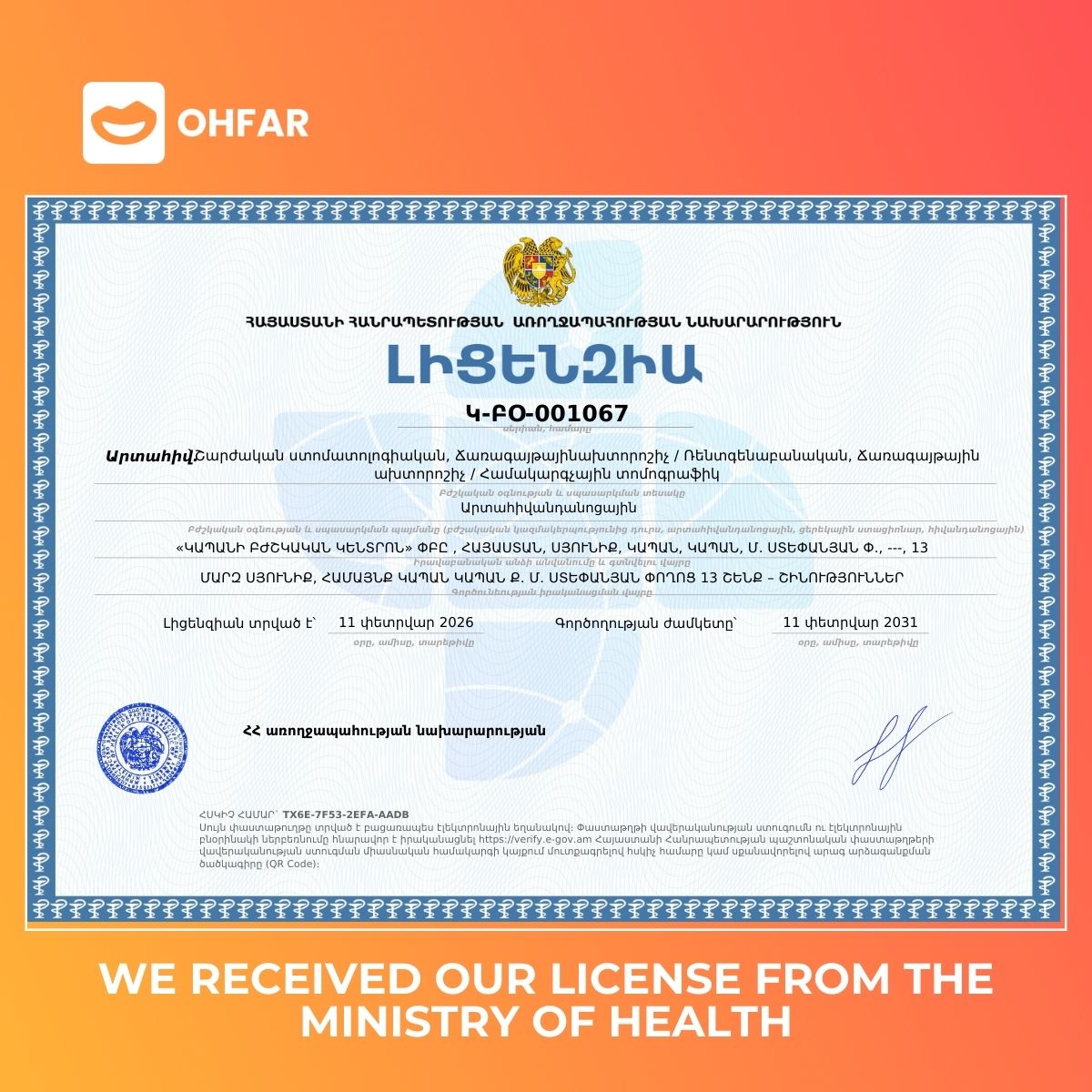 OHFAR has officially received a license to operate Adamnabus mobile dental...